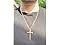 Angelus de Leon 14K Gold Style Figaro Chain Cross Pendant Necklace 4MM Cross Necklace Clasp for MEN, HUSBAND Thin for Charms Figaro Link Diamond Cut Religious Crucifix (20in)