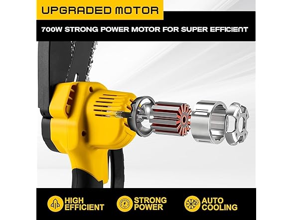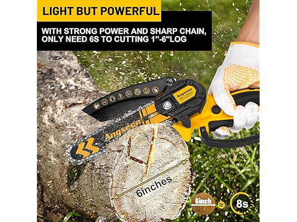 - 【STRONG DYNAMIC SYSTEM】Mini chainsaw 6 inch adapts 2 high-quality chain that has undergone a deep quenching process. And a 700W pure copper motor is used, which is very powerful. Youn will cutting more easyer and faster.
