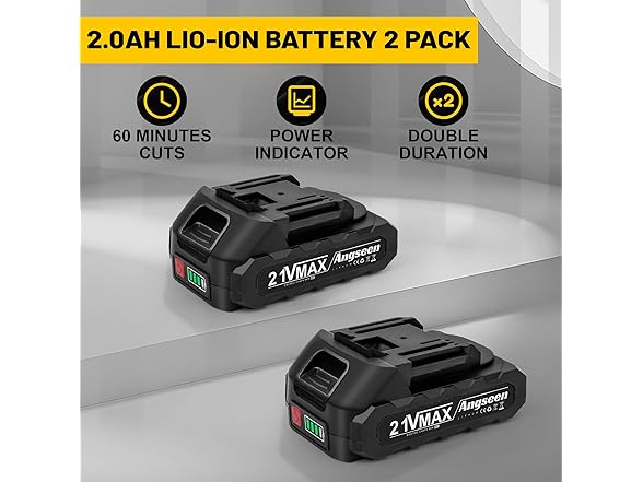 - 【2 LARGE BATTERY】Battery chainsaw equipped with 2 x 2.0Ah Li-batteries, the cordless chainsaw will finish all your cutting at once, even in the field!