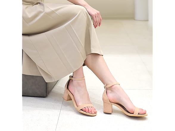 Ankis Nude Heels Women's Open Toe Ankle Strap Block Chunky Low Heeled Pump Size 2.25 Inches, Size 6