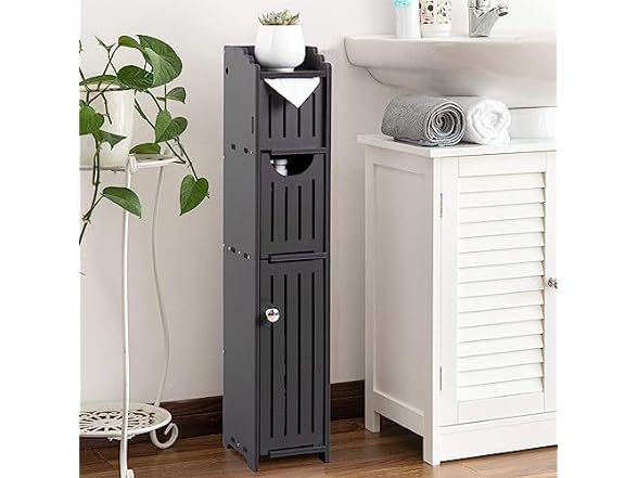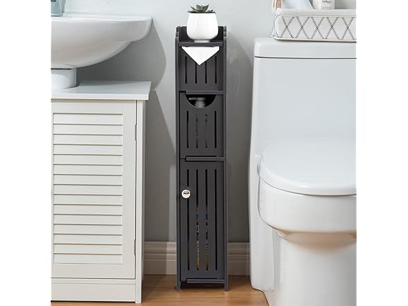 AOJEZOR Bathroom Storage Cabinet: Small Bathroom Storage Cabinet for Small Space-Toilet Paper Cabinet Fit for Small Roll,Black