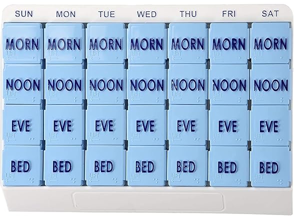 Apex Large 7 Day Weekly Pill Organizer - Weekly Pill Organizer, 4 Times a Day, Easy-Open, Organize Medication or Vitamins