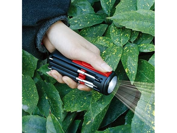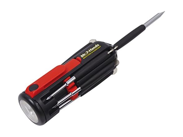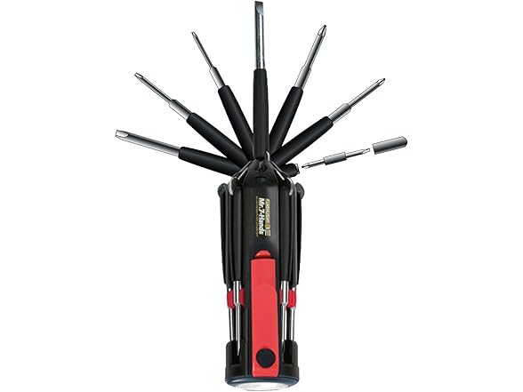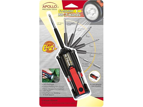 Apollo Tools Original Mr. 7-Hands, Multi Screwdriver Hand Tool, All In One Patented Screwdriver, 8 Screwdrivers in 1 Tool with Worklight and Flashlight - Red - DT1719