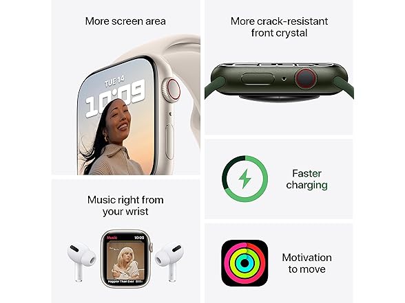 - WHY APPLE WATCH SERIES 7 — The most advanced Apple Watch features powerful health innovations like sensors and apps to measure your blood oxygen and take an ECG. The larger, Always-On Retina display makes it easier to use and read. The most durable Apple Watch. Charges faster so you can get going quicker.