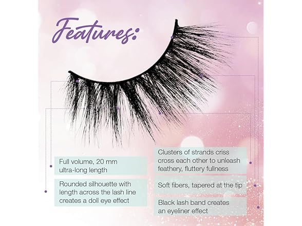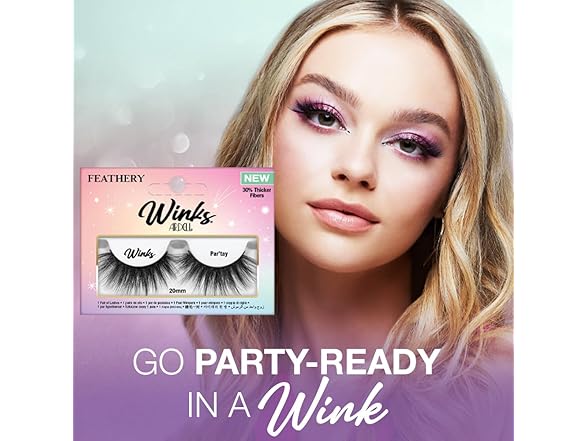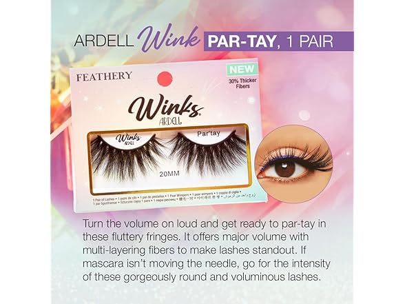 Ardell Winks Par-tay Lashes, Full Volume, 20mm Ultra-Long, Feathered and Fluttery, Black Band