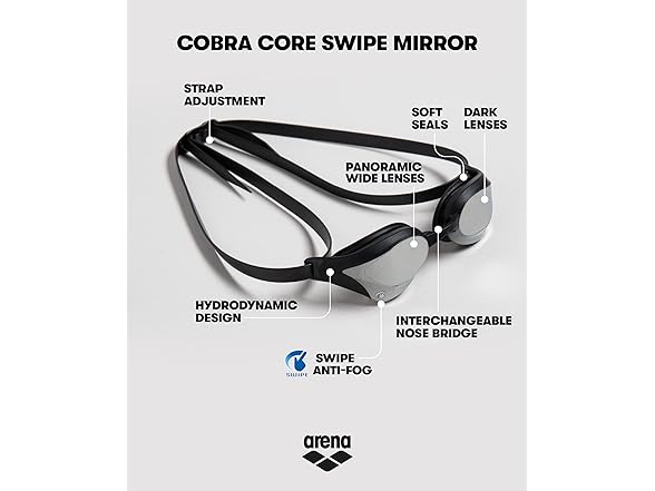 ARENA Unisex Cobra Core Swipe Anti-Fog Racing Swim Goggles for Men and Women Polycarbonate Mirror Lens, Violet/Coral