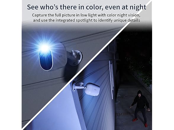 - See more at night - See important features like faces or license plates in full color, at night, with color night vision to make these outdoor security cameras the perfect cameras for home security