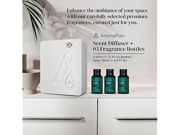 - ULTIMATE AROMA EXPERIENCE includes the 2024 upgraded AromaPlan scent home machine, designed to efficiently cover an area of 1,500 to 2,000 Sq Ft, ensuring your space is filled with aroma in minutes. Paired with the AromaPlan's Top Picks Fragrance Kit, this set features three meticulously crafted scents: Santal, Dubai, and 24k Magic in 1.5 fl.oz (45 ml) bottles. Perfect for choosing your favorite aroma and transforming any large space into a fragrant haven instantly.