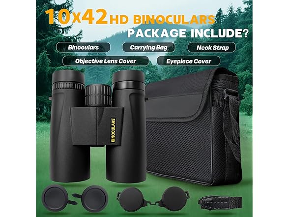 - 【What You Get】 Comes complete with 1 x Binoculars, 1 x Binoculars Case, 1 x Strap, 4 x Lens Caps, 1 x Cleaning Cloth, 1 x User Manual.