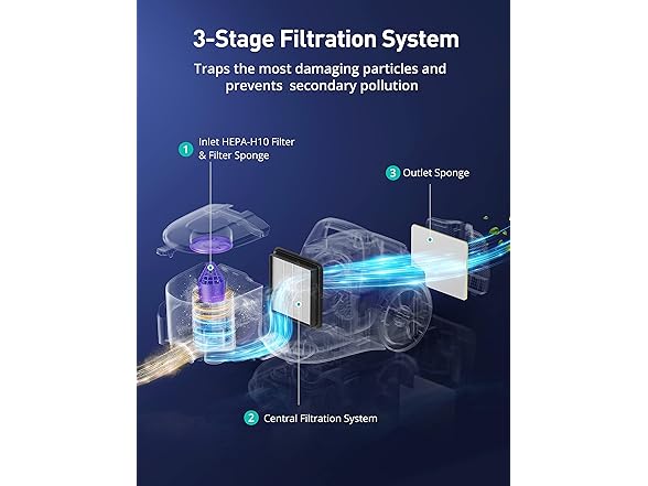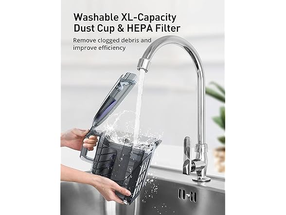 3.5L/3.7Qt super large capacity ensures longer cleaning sessions and less emptying frequency. The dust cup, along with the HEPA Filter, are washable use after use