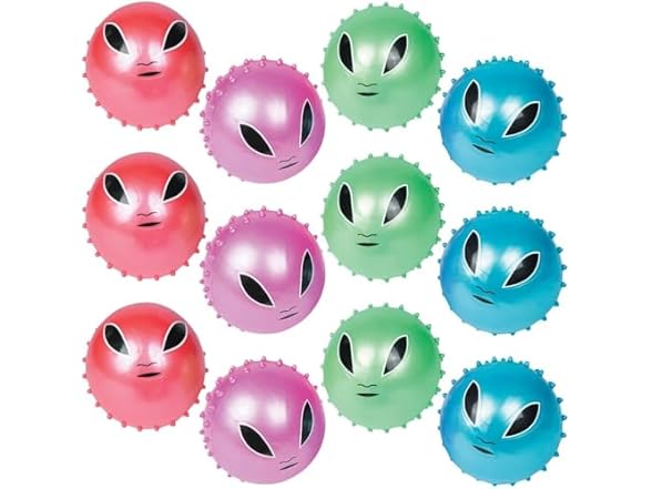 Assorted Colors Inflatable Alien Spike Vinyl Balls (5") 12 Count, Fun & Colorful Toys - Great Party Favors for Birthdays, Themed Parties & More