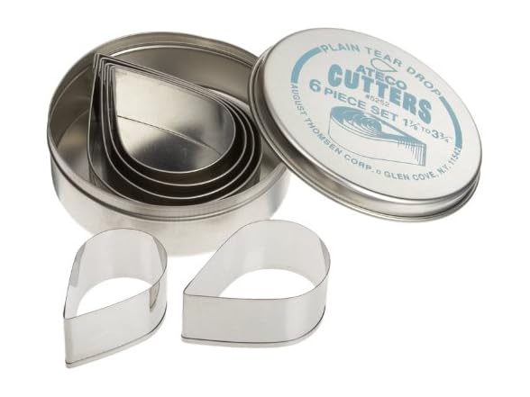 Ateco Plain Edge Tear Drop Cutters in Graduated Sizes, Stainless Steel, 6 Pc Set