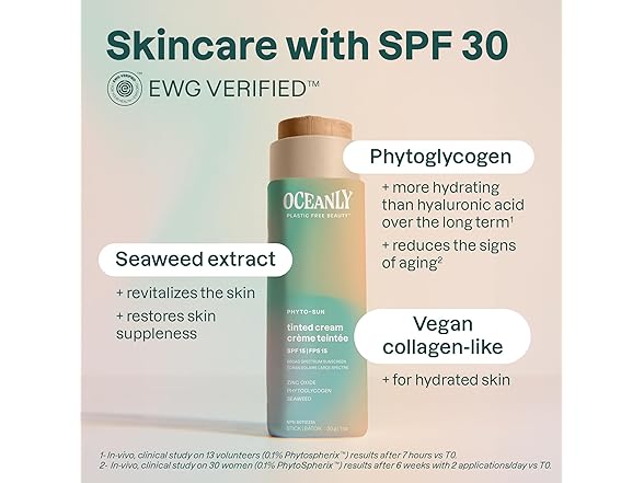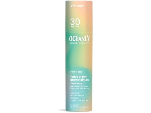 ATTITUDE Oceanly Tinted Face Cream Stick with SPF 30, EWG Verified, Plastic-Free, Broad Spectrum UVA/UVB Protection with Zinc Oxide, Universal Tint, Unscented, 1 Ounce