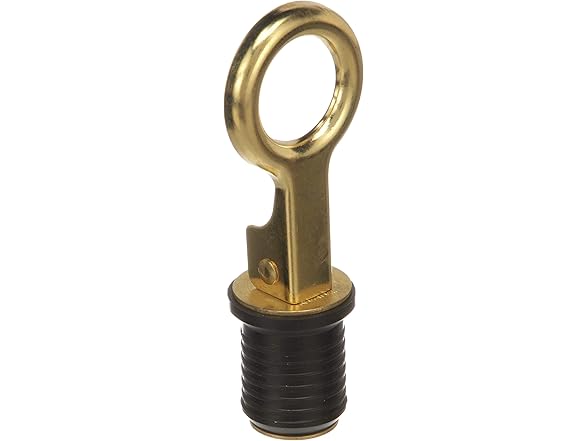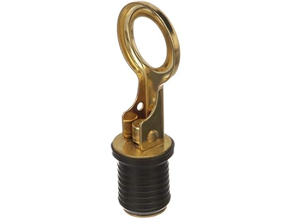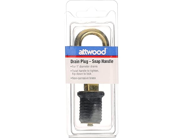 Attwood 7524A7 Snap-Handle Drain Plug, For 1-Inch-Diameter Drains, Locks in Place, Brass Handle, Rubber Plug