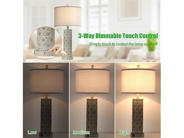 - 【3-Way Dimmable】Our touch lamps for bedrooms are equipped with 3 levels of brightness (Low, Medium, High), allowing you to adjust the lighting according to your needs in the home or office. By simply touching the lamp, you can easily select the desired brightness level. These lamps are super practical for use as nightstand, reading, and working lamps.