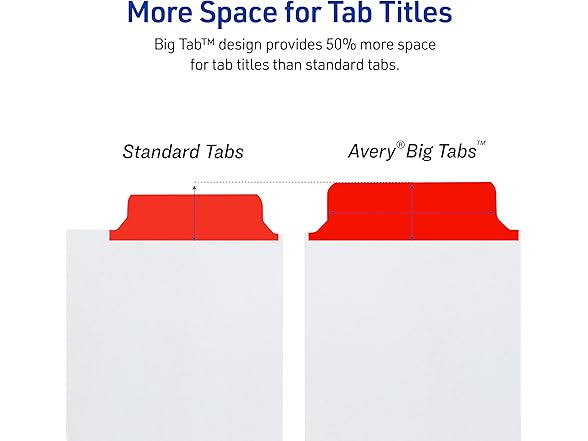 - Enjoy 1.5 times more writing space than other 3 ring binder dividers with tabs with our Big Tab design