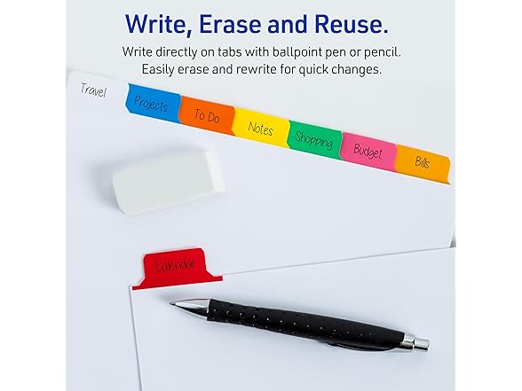 - Make changes quickly and easily by writing directly on binder dividers with tabs with a ballpoint pen or pencil and erase as needed