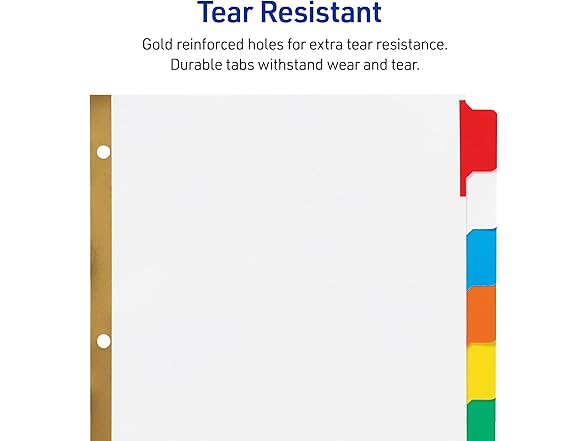 - Get lasting organization with sturdy paper dividers featuring gold, reinforced holes designed to provide extra durability to prevent tearing at binder holes