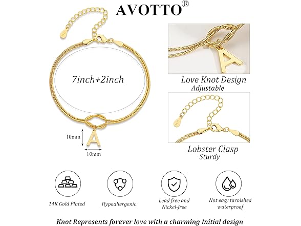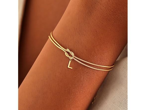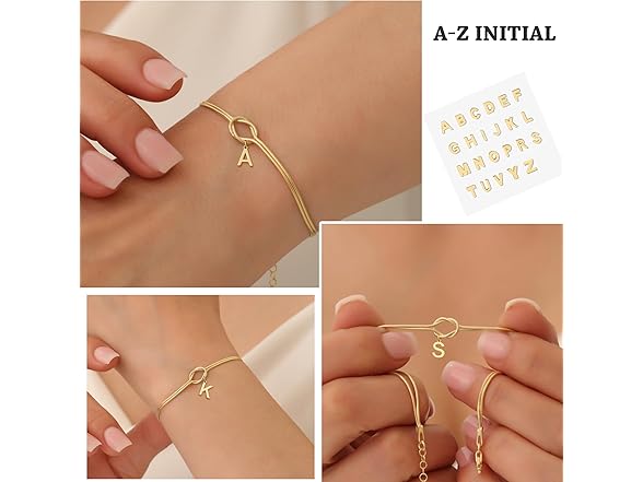 Avotto Initial Bracelets for Women Gold Love Knot Bracelet Snake Chain Knot Bracelet Dainty Gold Letter Bracelet Adjustable Initial Jewelry Couples Bracelets Friendship Lover Gift