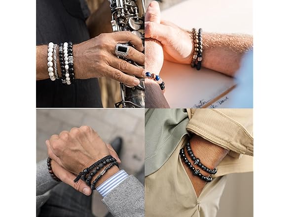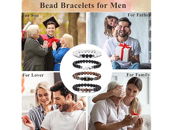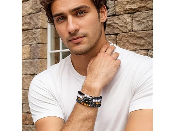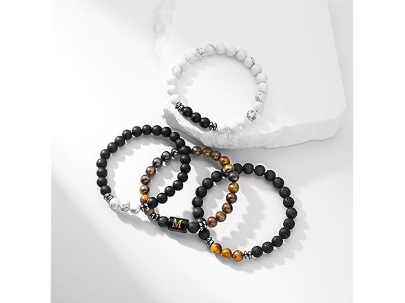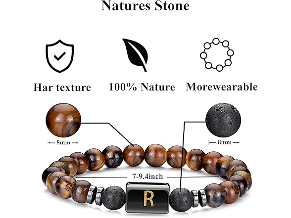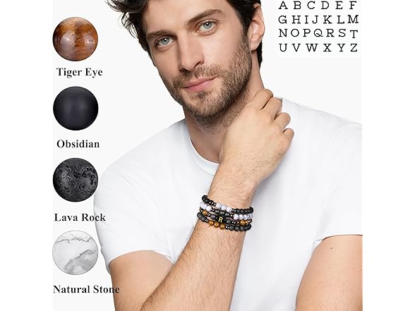 Avotto Mens Beaded Bracelets Tiger Eye Initial Bracelet for Men Lava Rock Bracelets Set Stretch Obsidian Stone Bracelets Mens Wrist Jewelry Christmas Gifts Male Him Pulseras Para Hombres Letter R