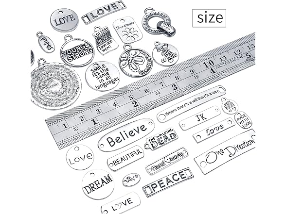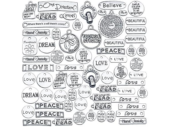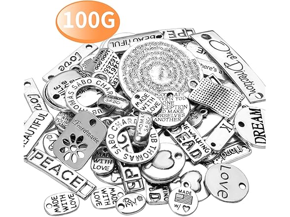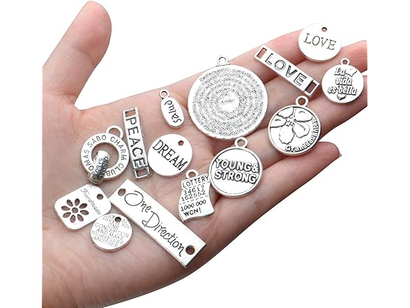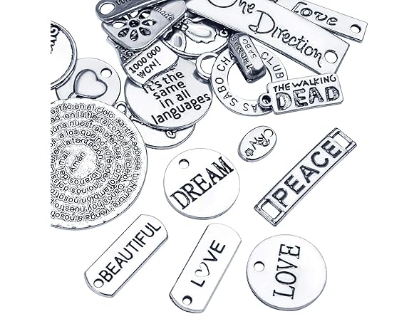 Inspiration Words Charms, 100g (40-60pcs) Mix Lettering Saying Pendants Engraved Motivational Charms Beads for Crafting, Jewelry Findings Making Accessory for DIY Necklace Bracelet