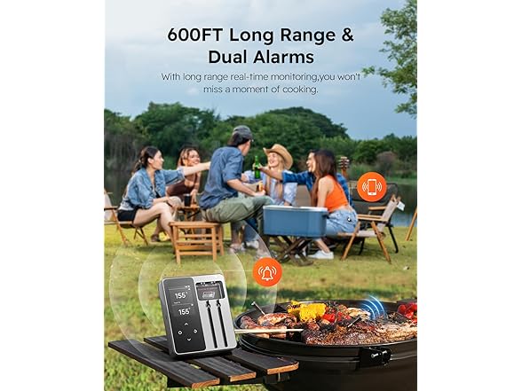- 600FT Long-Distance Control with Dual Alerts: Take full control of your grilling from up to 600 feet away! With dual alerts (app and Repeater), you’ll never miss a crucial moment-your meat is always on track for perfection, even if you're far from the grill