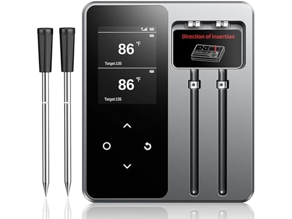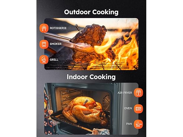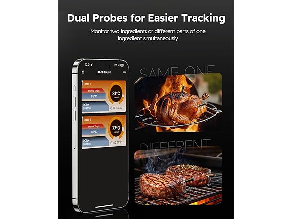 - Dual-Probe Design for Multi-Tasking: Cook like a pro with two probes that allow you to monitor multiple cuts of meat at once, or track different cooking zones-perfect for complex meals or big BBQ sessions