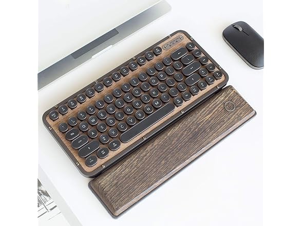 AZIO Retro Compact Keyboard (Elwood) - Bluetooth Wireless/USB Wired Vintage Backlit Walnut Wood Mechanical Keyboard with Arm Rest for Mac and PC (MK-RCK-W-01-US)