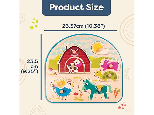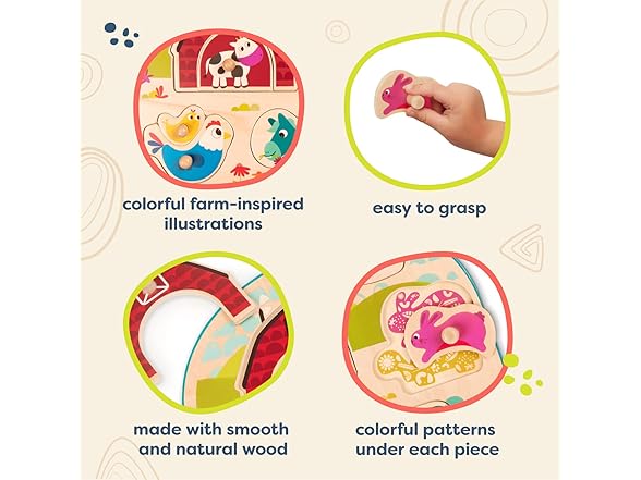 B. toys – Wooden Peg Puzzle – Animal Peg Puzzle for Toddlers, Kids – 8 Chunky Pieces – 18+ Months – Animal Barnyard