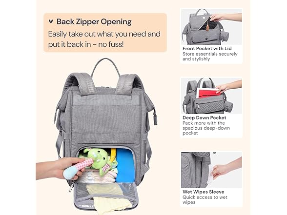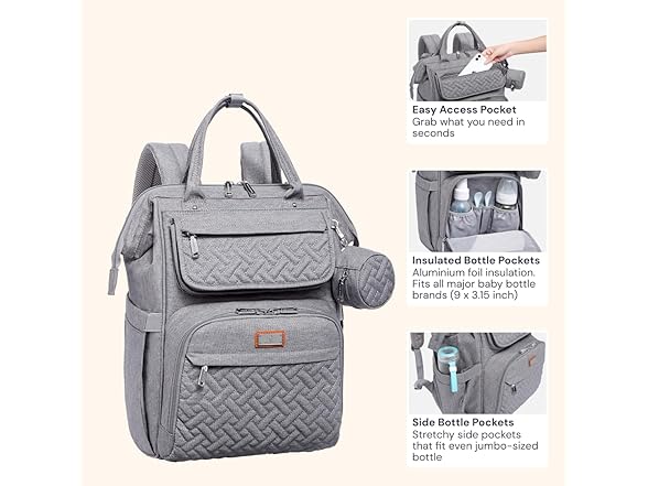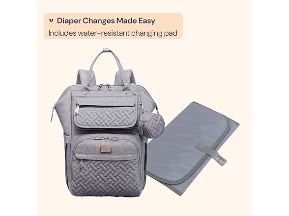 BabbleRoo Diaper Bag Backpack- Light Gray