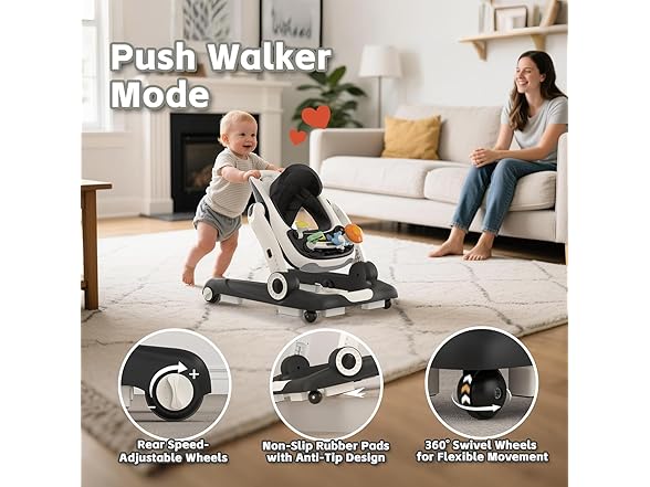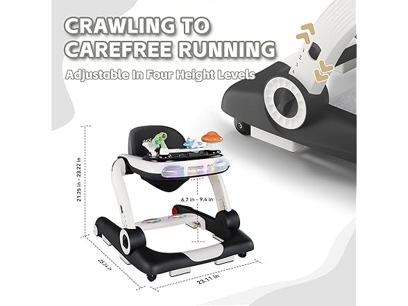 - 4 Adjustable Heights: The baby walkers for boys has 4 adjustable height to switch, walker for baby is suitable for tall and short baby and grow with babies. The breathable seat cover will give baby a comfortable experience. The walker baby is perfect for baby boy and girl