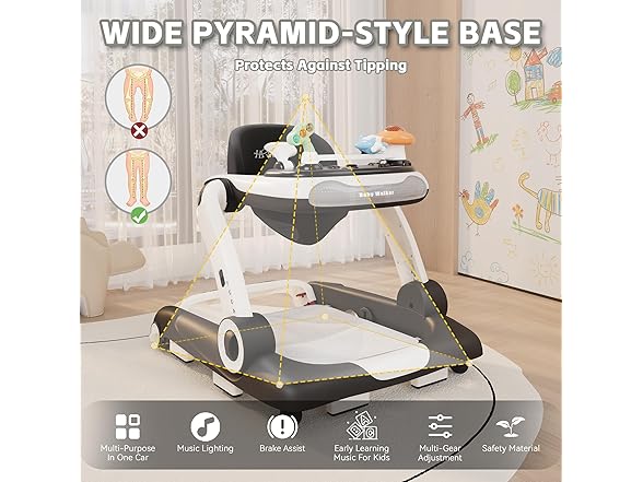 - Music & Toy Infant Walker: The baby walker and bouncer combo comes with music, which will help stimulate your baby’s senses and accelerate their early development and help develop baby 's coordination and motor skills. Ideal walker for baby girl 6-18 months, perfect walker for babies 12-18 months