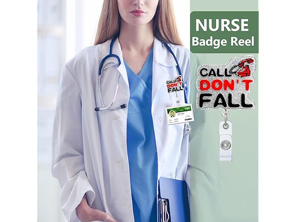 Badge Reel Holder Retractable with ID Clip for Nurse Nursing Name Tag Card, Call Don't Fall Badge Holder Alligator Clip for Medical Assistant Nursing Student Doctor Office