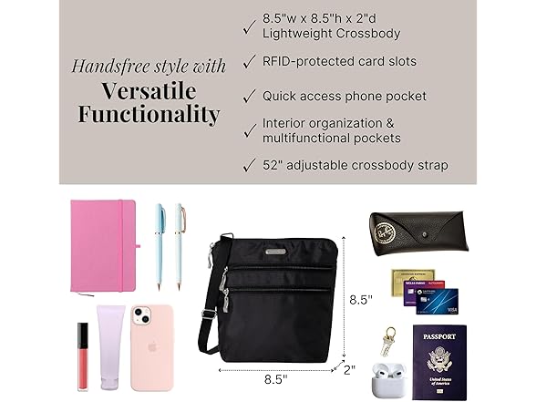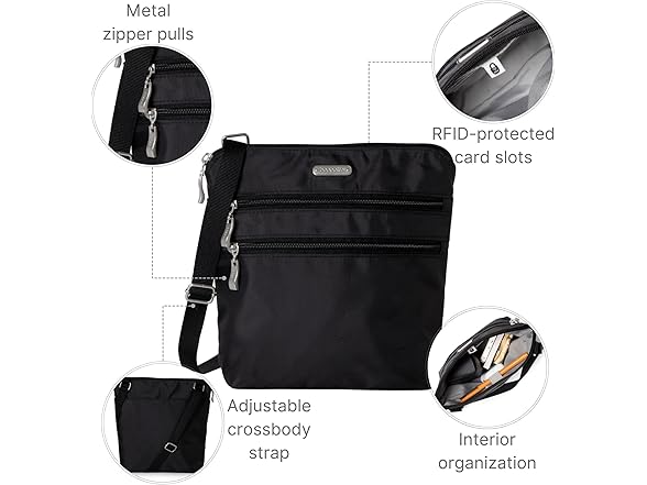 Baggallini Women's Essential Crossbody Bag - Built-in RFID Card Holder - Cross Body Purse with Quick-access Phone Pocket