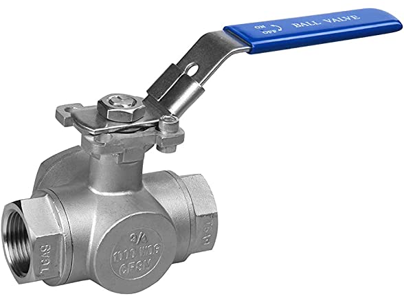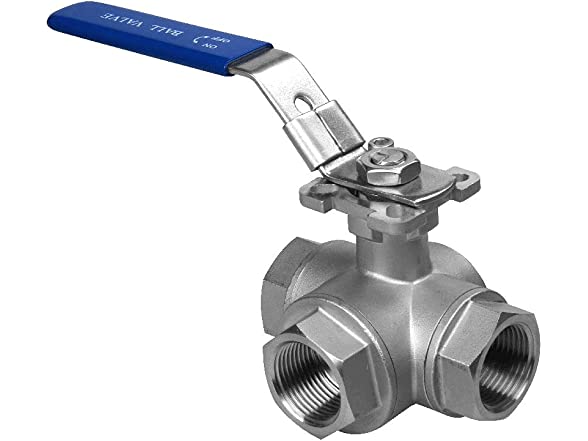 Cowin Brewing 3/4" 3-Way Stainless Steel (304) Ball Valve - L Port With Mounting Pad, 1000PSI NPT