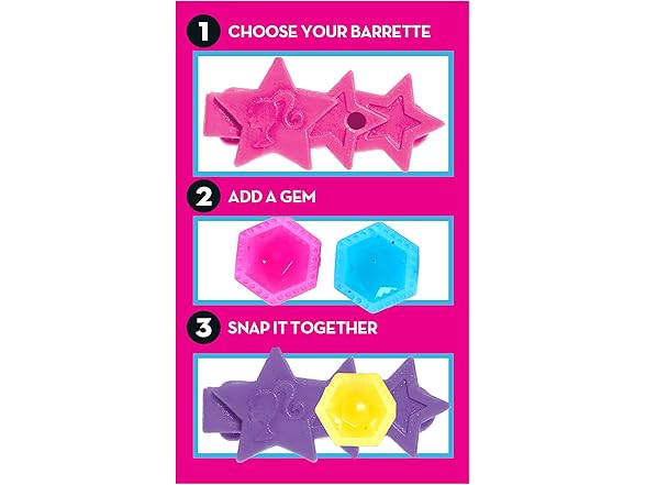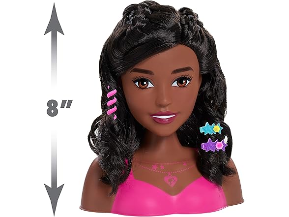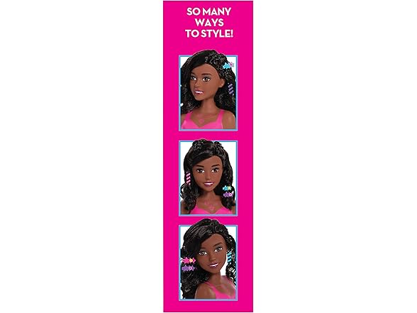 - Includes: one Barbie Styling Head, three customizable barrettes, eight pop-in gems, three hair twists, hair bands and one brush