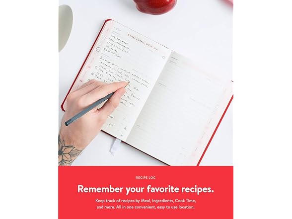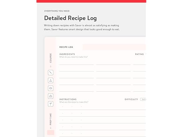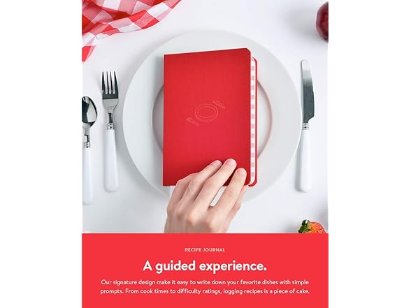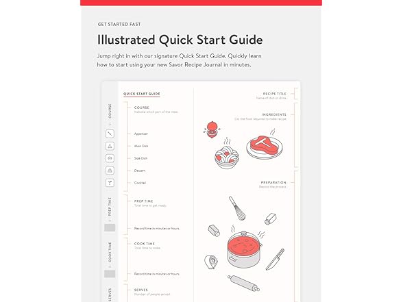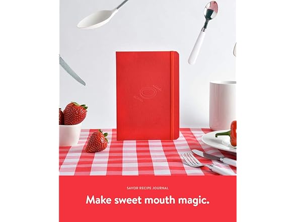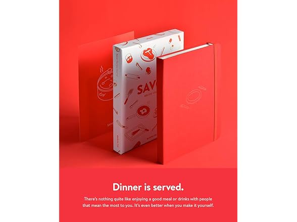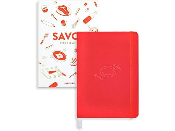 Baronfig Savor Recipe Journal - Guided Recipe Book for Home Cooks and Food Lovers - Clothbound Hardcover 5.4 x 7.7 Inches - 192 Pages in Red