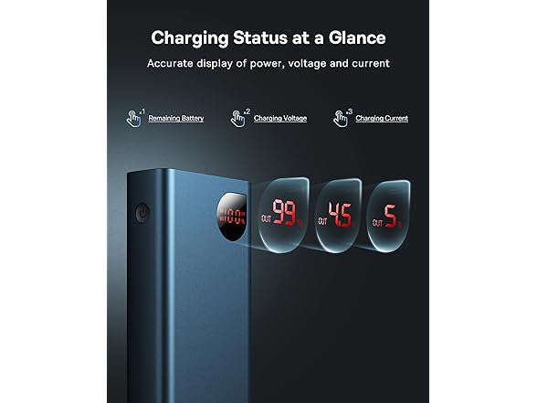 - 🏆️【LED Indicator & Mental Shell】Numerical LED charge indicator, not guessing or flashing LEDs, you can monitor the battery level any time. Simple and stylish 𝐀𝐥𝐮𝐦𝐢𝐧𝐮𝐦 shell has super heat dissipation function to ensure safe charging without overheating.
