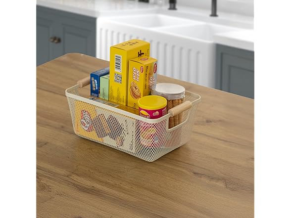 - Functional Elegance: With its open-weave metal frame and wooden side handles, this basket offers a stylish solution for everyday storage. The breathable mesh design keeps contents visible and well-ventilated, while the wooden handles provide a natural accent and make it easy to move from room to room. Its versatile look and lightweight build make it perfect for both daily use and display.