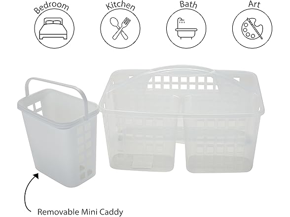 - DORM CADDY: This caddy is a must have for your college dorm. It is perfect for holding all your shower essentials. It makes the bathroom trip easier.