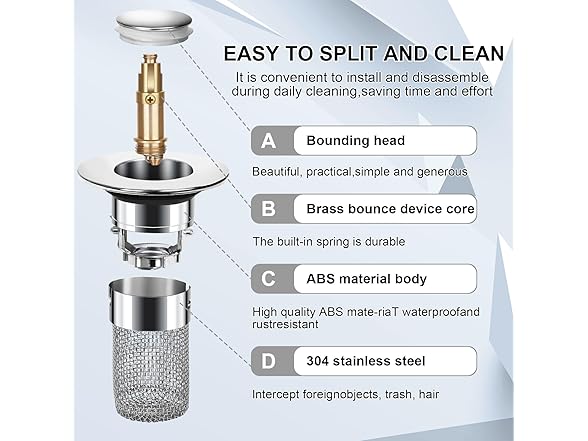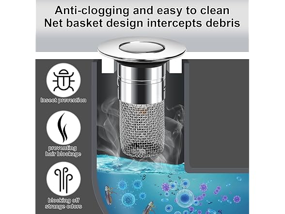 - 【Excellent Material, Feel Free To Use】The Universal pop-up sink drain filter is mainly made of stainless steel materials and thickened copper materials,Drain Plug Bathroom Sinks are brass core construction that ensures durability and longevity, rust-proof and reliable.