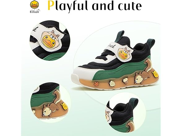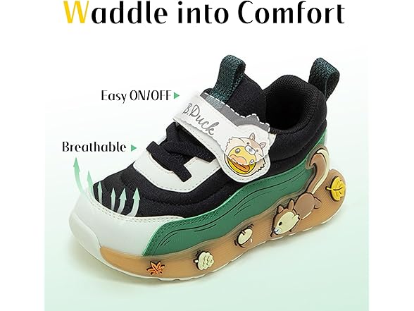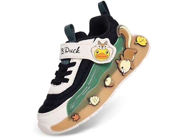 BDUCK+ Toddler Shoes for Girl and Boy Kids Shoes Toddler Sneakers Girls Shoes [Cute Cartoon Squirrel] Toddler Running Shoes Toddler Sneakers for Toddler/Little Kid Black