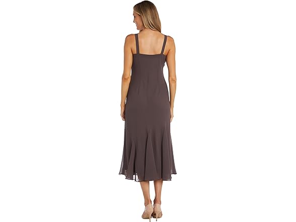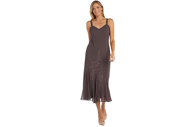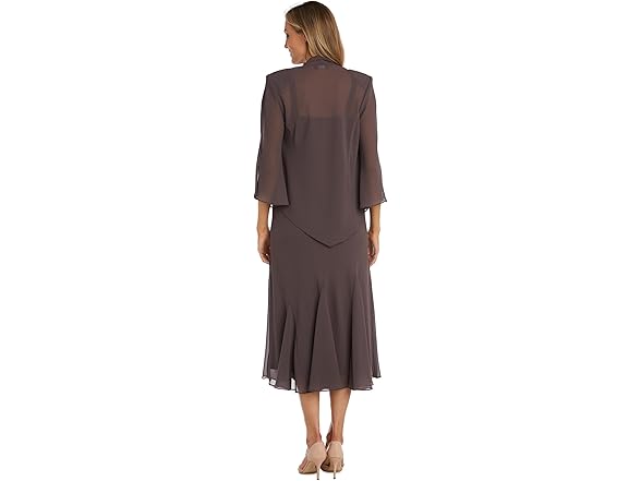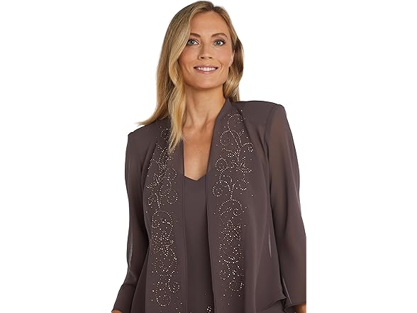 R&M Richards Women's Beaded Pebble Georgette Mid-Calf Slip Dress W/Matching 3/4 Sleeve Jacket Fig