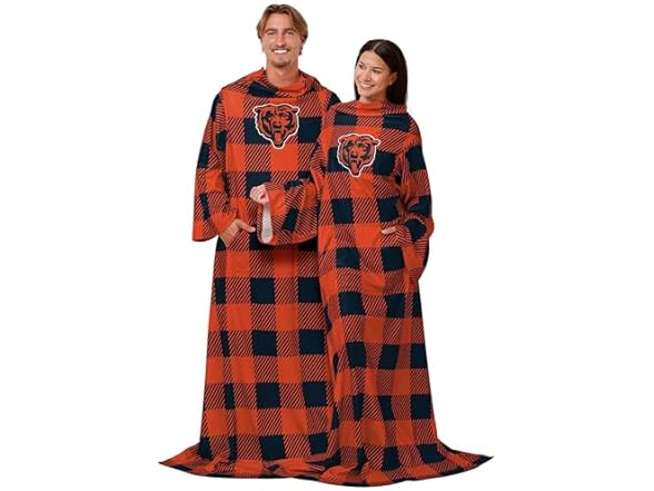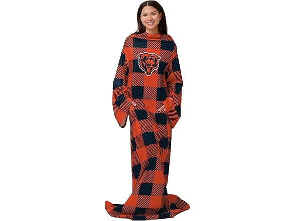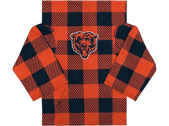 FOCO Chicago Bears NFL Buffalo Plaid Oversized Wearable Throw Blanket - 48" x 71"