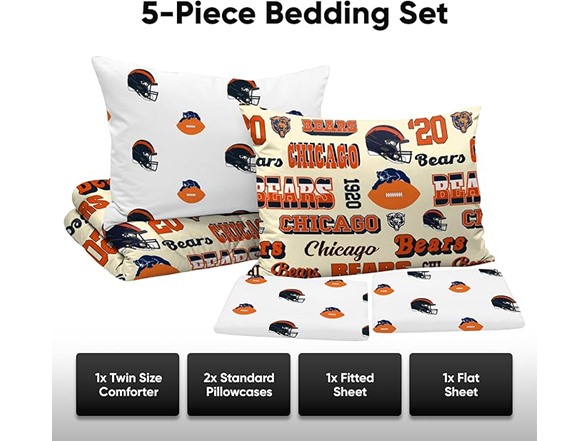 FOCO Chicago Bears NFL Retro Bed in a Bag Comforter Bedding 5 Piece Twin Set