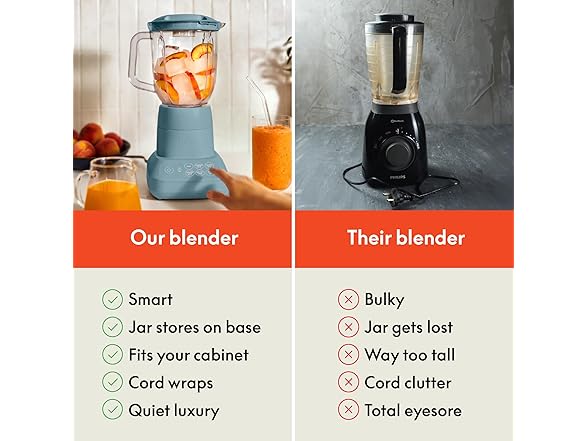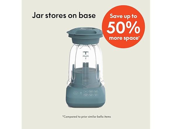 - Space-Saving Design: Part of our Fits-anywhere kitchenware system, the bella Flip & Store Smoothie Blender features a unique design where the 6-cup jar flips onto the base, saving up to 50% more space when stored. Perfect for compact kitchens!