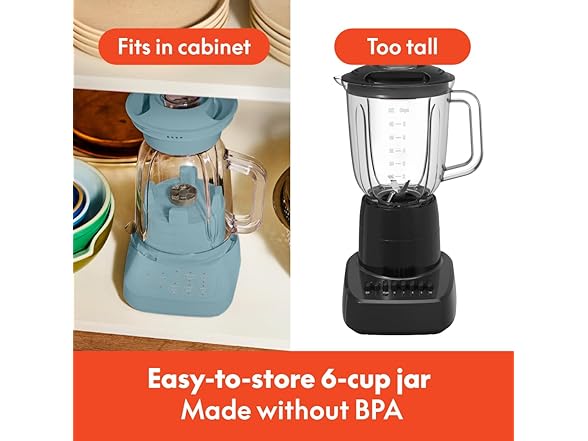 - Easy-Pour Jar: The 6-cup, BPA-free jar is designed with a generous handle and an easy-pour spout, making it simple to serve your creations without spills. The removable measuring cap in the lid allows for precise ingredient additions while blending