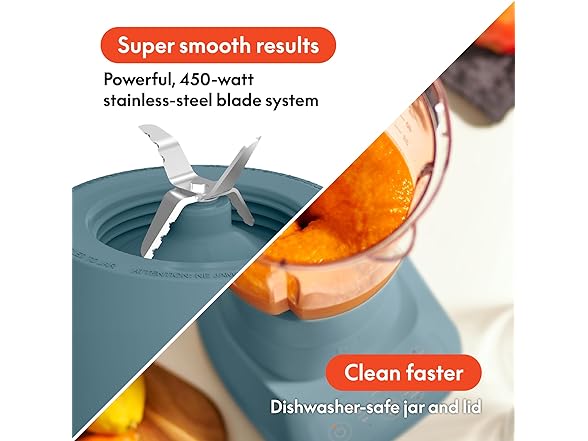 Meet the bella Flip & Store Blender, a sleek and space-saving powerhouse designed for modern kitchens. With its innovative flip jar storage design, our blenders fit seamlessly into any cabinet, keeping your kitchen tidy and organized. The slim profile of this small food processor not only saves space but also adds a touch of style to your countertop. Powered by a 450-watt rated (520W peak) blending system, this ice crusher is equipped to handle everything from ice to fresh and frozen fruits and vegetables. The durable 4-tip stainless steel blade ensures smooth, consistent results, whether you’re whipping up slushy cocktails, creamy soups, or large protein shakes for the whole family. The generous 48 oz capacity pitcher is perfect for blending family-sized portions, making it a versatile tool for all your culinary creations. The hand blender’s 10 speed control settings offer complete flexibility, allowing you to customize your blend from smooth purees to chunky salsas. The lid features a convenient filler cap that doubles as a measuring cup, making it easy to add ingredients on the go. Cleaning up this milkshake maker is a breeze with the removable, dishwasher-safe jar and lid. Available in five stylish bella colors—Oatmilk, Surf, Plum, Seaglass, and Blossom—this baby puree maker isn’t just functional; it’s a perfect gift for new apartments, housewarmings, or wedding registries. The cord storage in the base keeps everything neatly tucked away, ensuring your kitchen stays clutter-free while you enjoy powerful, efficient blending every time.