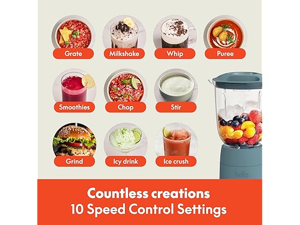 - 10-Speed Control: Customize your blending experience with 10 powerful speed settings, allowing you to blend, puree, liquify, or crush ingredients to perfection. Whether you’re making a protein shake or a frozen drink, the options are endless
