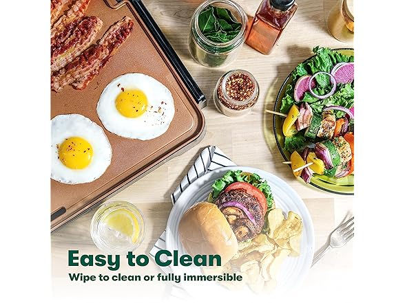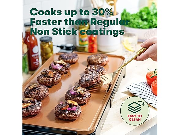 - NONSTICK COOKING: This griddle's Healthy-Eco coating contains no harmful chemicals like lead & cadmium. Its titanium ceramic coating offers superior food release making this a true non-stick surface